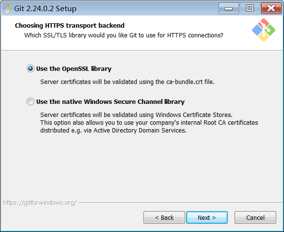 第一个选项是“使用 OpenSSL 库”。服务器证书将使用ca-bundle.crt文件进行验证。这也是我们常用的选项。
