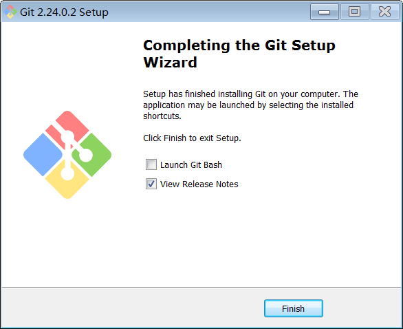 在这个界面,可以勾选是否启动启动Git Bash和是否查看发行说明,然后点“Finish”按钮退出安装界面。